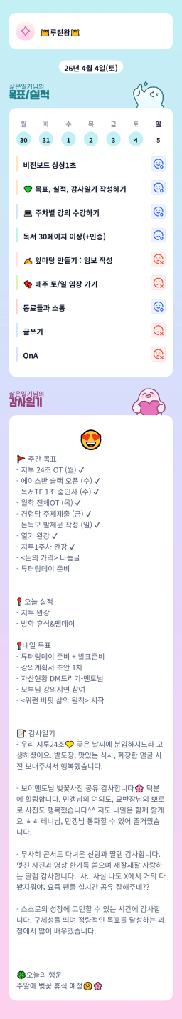 [찐부자] 매일 목실감 2026년 4월4일
