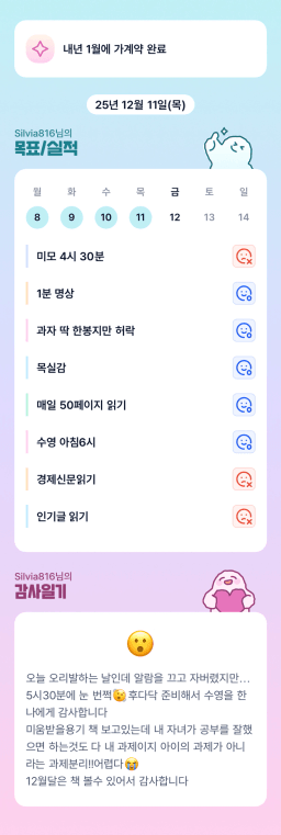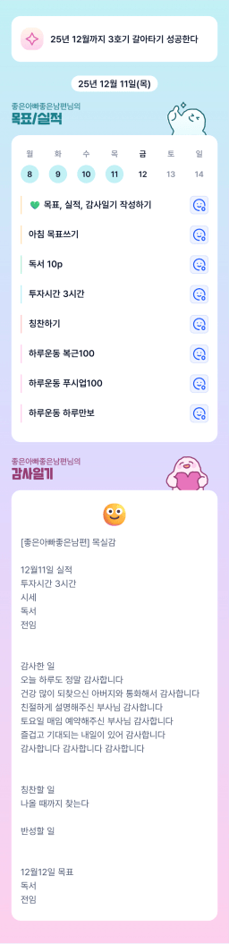 25년 12/12 목표,실적,감사일기,시간가계부[헤라클래스]