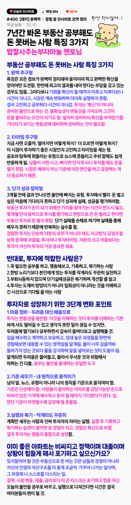 레키 칼럼요약 - 7년간 봐온 부동산 공부해도 돈 못버는 사람 특징 3가지 (밥잘사주는부자마눌 멘토님) #400