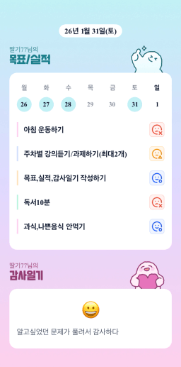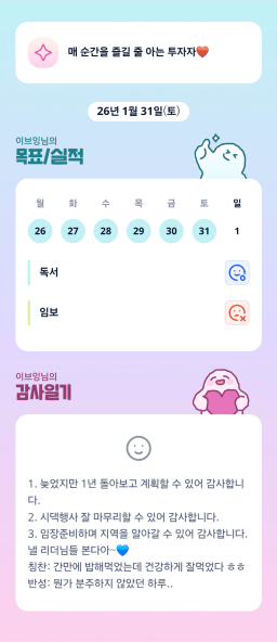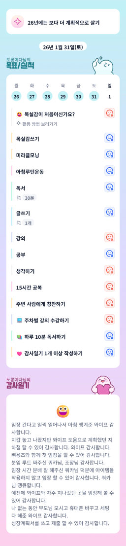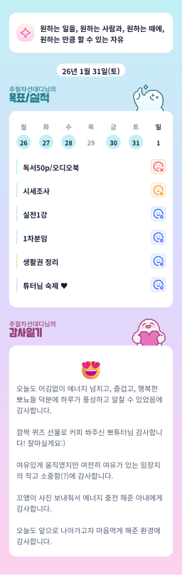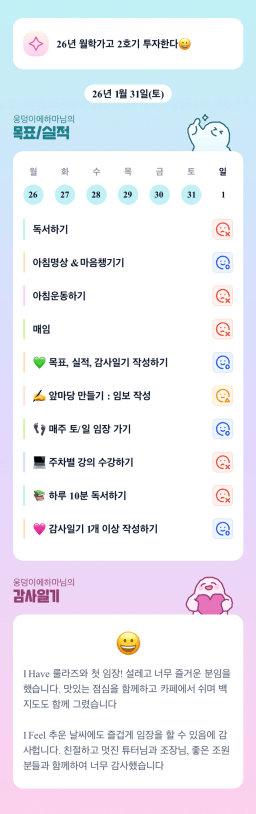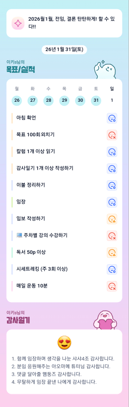 [러버블리v] 26.2.1 목표, 1.31 감사일기 + 칭반