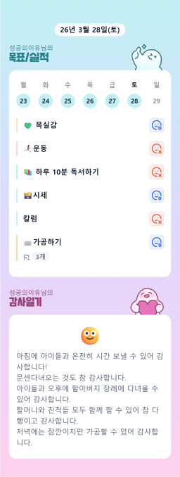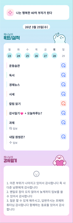 [채니] 목실감 누적 258일, 연속 231일 진행중 26.03.25~28