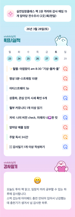 [vivikiki] 목실감 누적 224일, 연속 57일 진행중_3/28