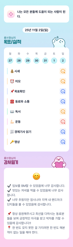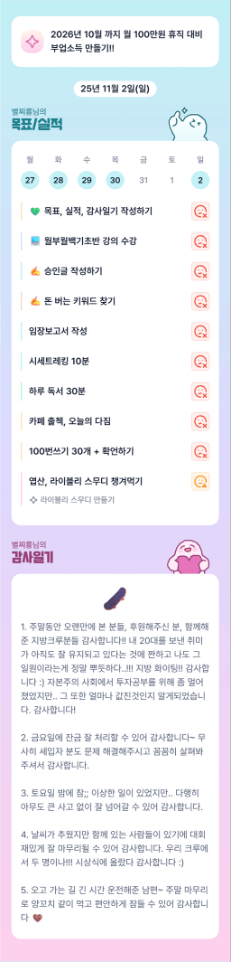 [별찌롱] 11/2 실적,감사일기, 시간가계부 11/3 목표