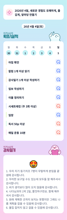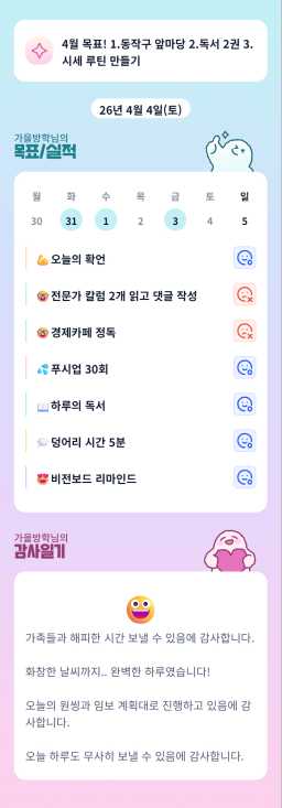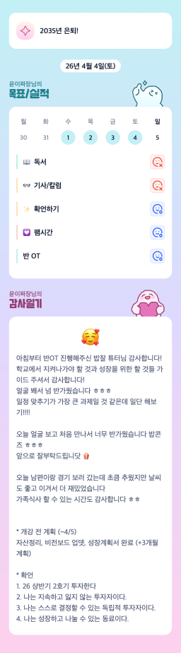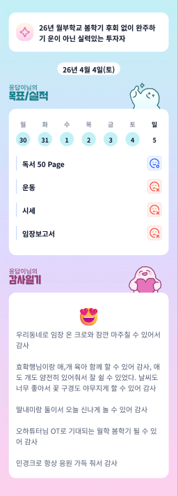 [월부학교 봄학기 🌸아직 버3ㅓ떡먹니? 우린 팥빈쓰🍨 여유로운리치] 2026.4.3~4.4 감사일기