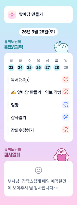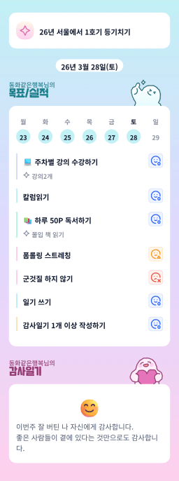 [내마기5기 5월9일 마감이 쟈니! 쟈써? 잘하자^^ 사상지평] 3주차 목실감 인증