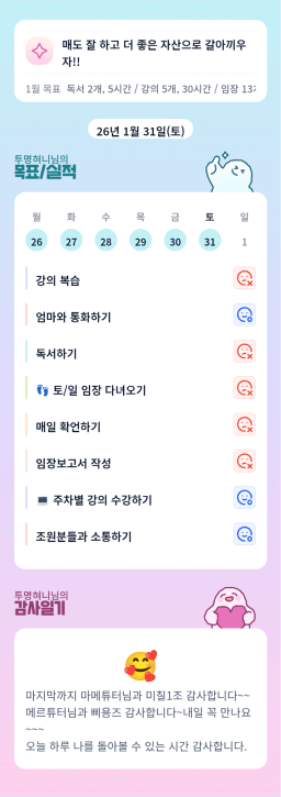 [실전34기 24시간 12개월 꾸준히 나알이 나아가조💙 녹차크림] 20260131 목실감