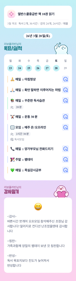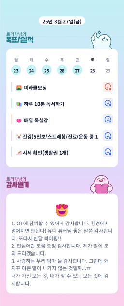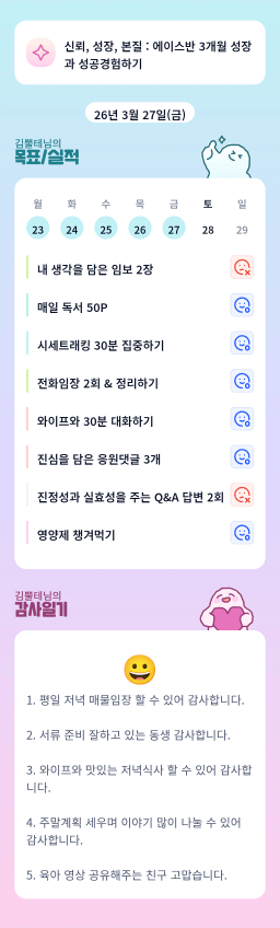 [매일이 기적] 목실감 누적 21일, 연속 21일 진행중