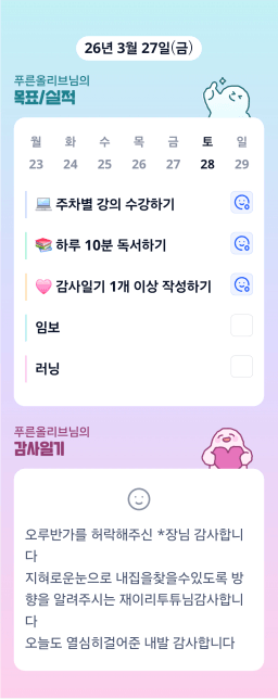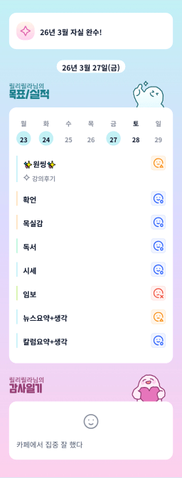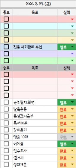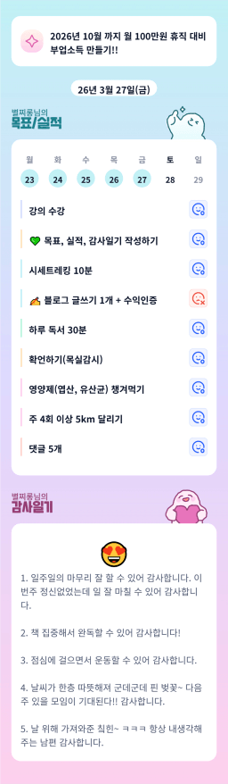 [별찌롱] 3/27 실적, 감사일기, 시간가계부 3/28 목표