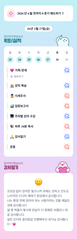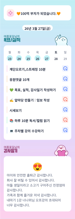 [행복한 여름꽃길] 목실감 26.3.27 누적 230일, 연속 211일 진행중