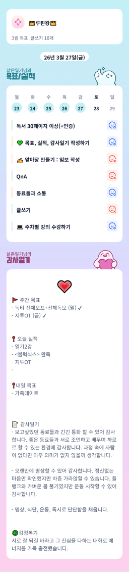 [열중49기 25조/독서TF 허씨허씨] 3. 26 ~ 27 감사일기