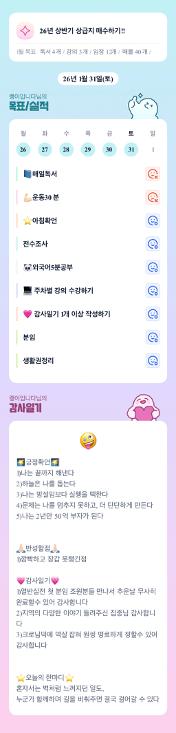 1/31일 목실감 [실준72기 경제적자유를 위해 5늘도 꾸준히하조 랭이입니다]