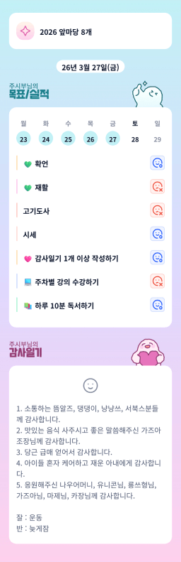 [하나 둘 셋 아주아] 목실감 누적 226일, 연속 3일 진행중