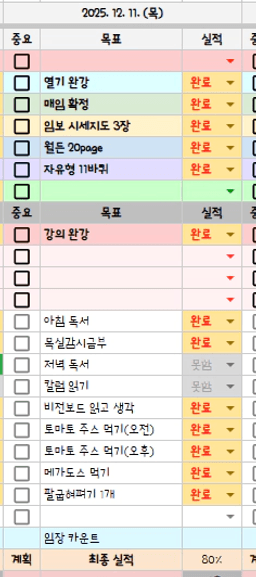 [매일목실감_깜냥] 12월11일(목) & 12일(금) 목표