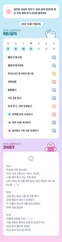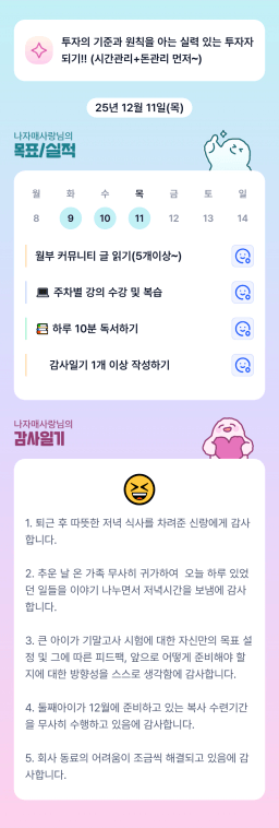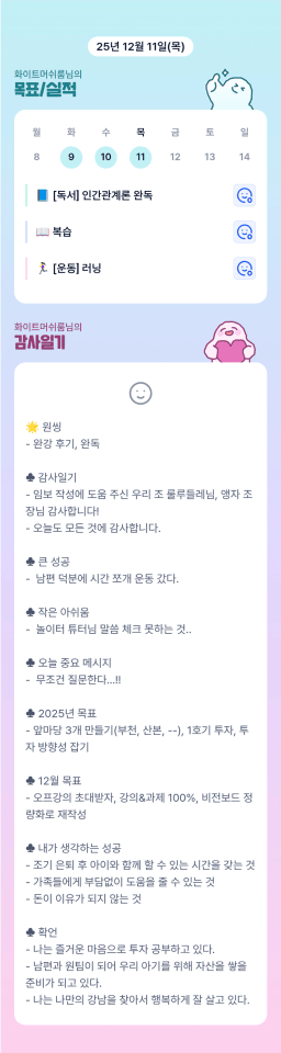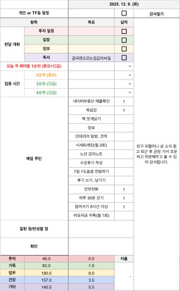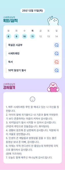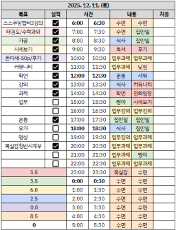 [짱이사랑맘] 12/11 목실감칭반시계부