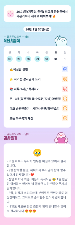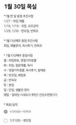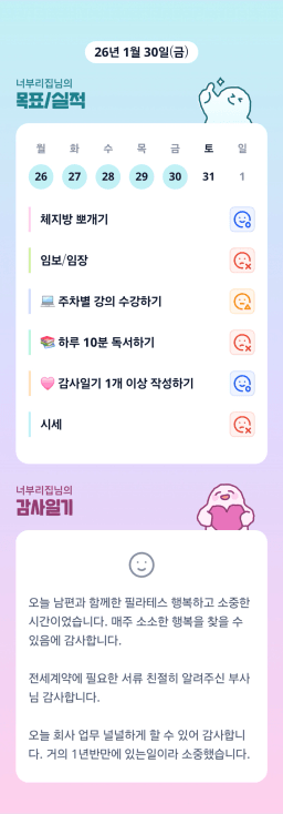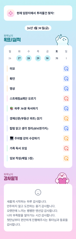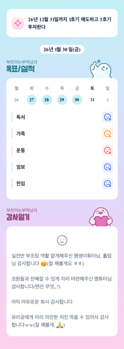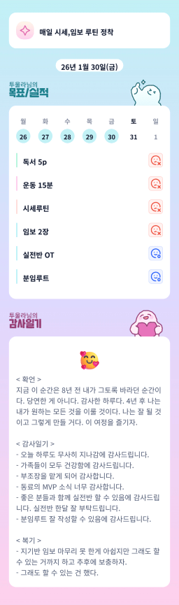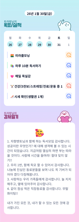 [러버블리v] 26.1.31 목표, 1.30 감사일기 + 칭반