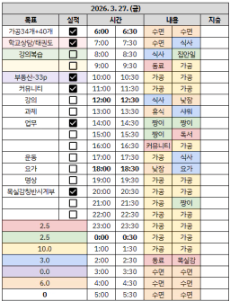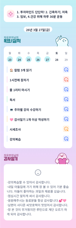 [짱이사랑맘] 3/27 목실감칭반시계부
