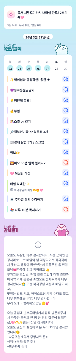 [jina찐] 목실감 누적 119일, 연속 101일 진행중 3/26-27