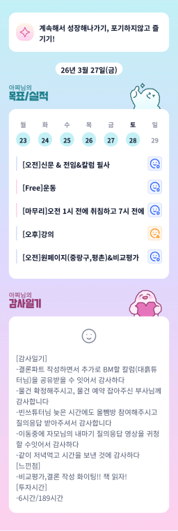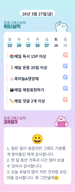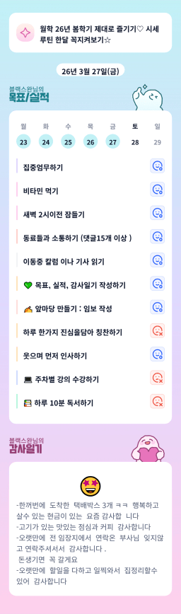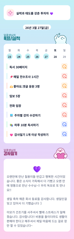 [달콤생] 3/27 목실감 누적 173일, 연속 87일 진행중