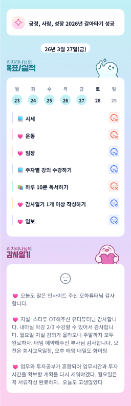 [열중49기 독서가 이렇게 6쾌하조 안산월부가즈아] 매일 목실감 03/27-28