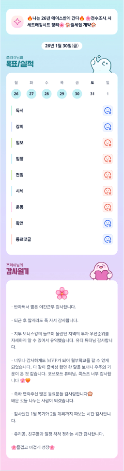 [실전34기 2월은 7ㅏㅅ생 대신 멤생 살자😎 횰럽] 목실감시금부 2026.01.30
