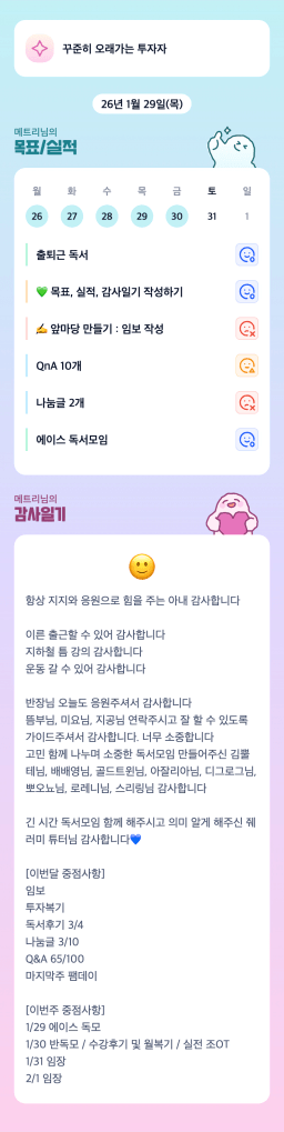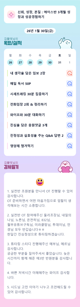 [행복한금붕이] 매일목실감 (20260130) D+280