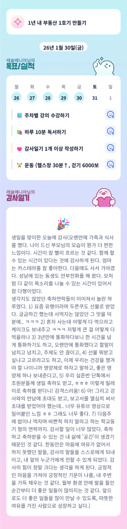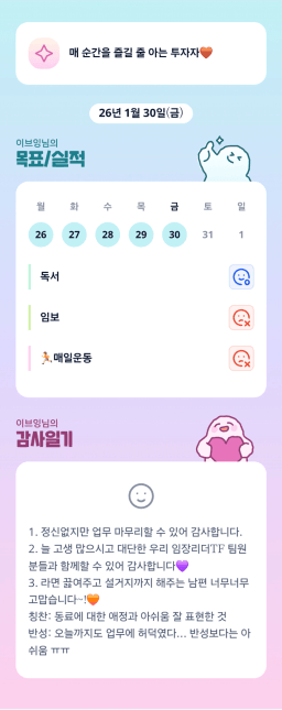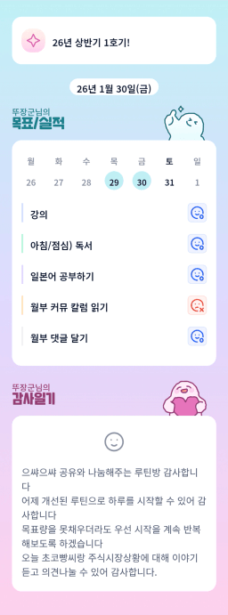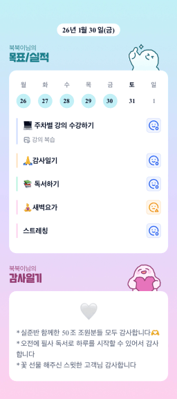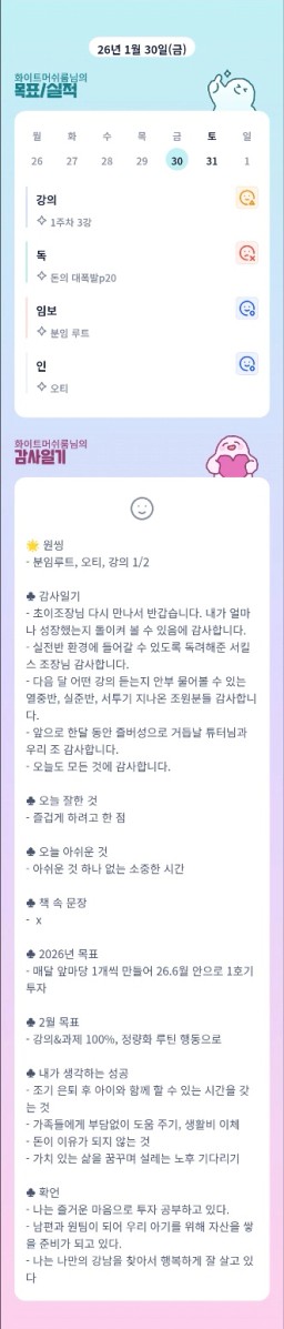 [짱이사랑맘] 1/30 목실감칭반시계부