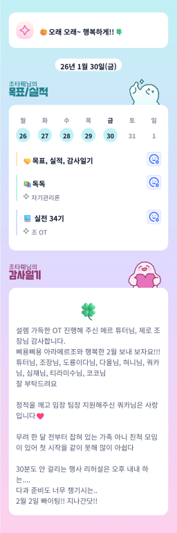 [지투기32기 7ㅣ똥차게 해나갈 럭키조 별을향해쏴라]#1/30 매일목실감