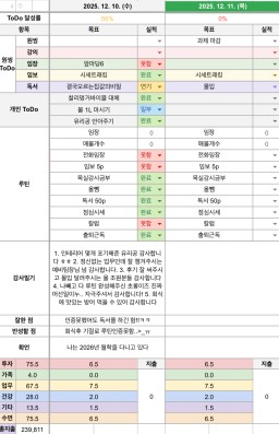 [러버블리v] 25.12.11 목표, 12.10 감사일기 + 칭반