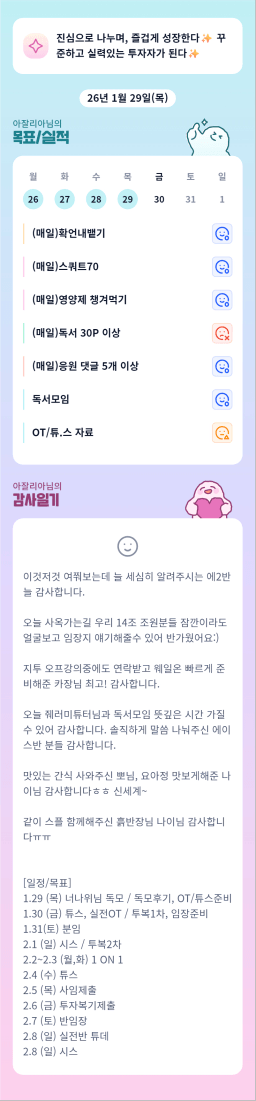 [지투실 27기 거봐 룰루랄라 튜터링 받고 그 집 4길 잘했지 풍월주인] 지투실 27기 마지막 목실감(20260130)