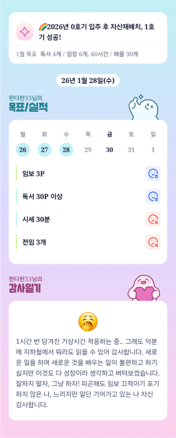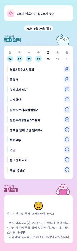 [지기 32기 5로지 투자에 대한 1념 뿐이조 한다한] 1/28~29 목실감
