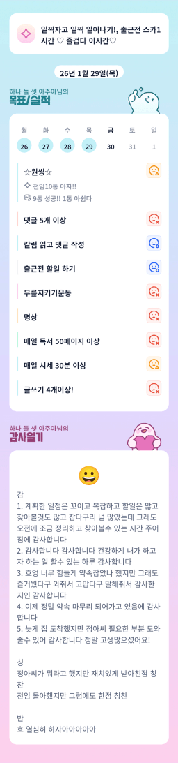 [하나 둘 셋 아주아] 26.01.29 목 목실감