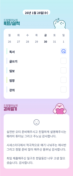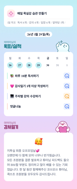 [지투27기 밍튜터님ㅇ1ㄹ6 밍밍할 틈 어썸 라니] 목실감시금부 0127-0129