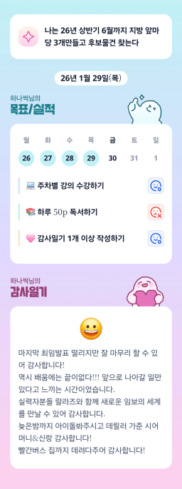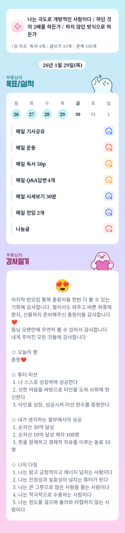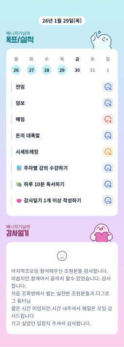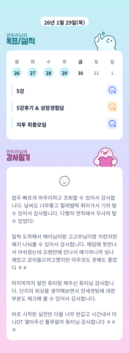 [지투실거봐룰루랄라튜터링받고그집4길잘했지_하나씩]매일목실감26.01.29