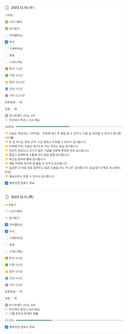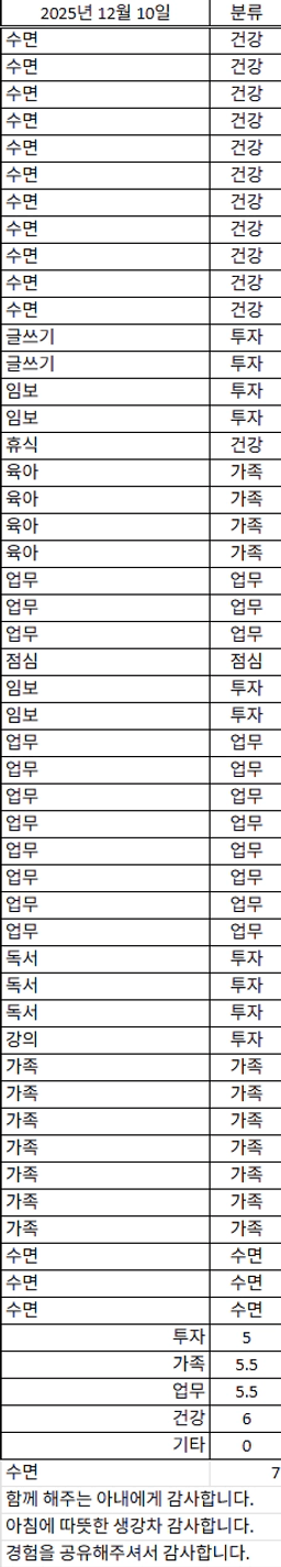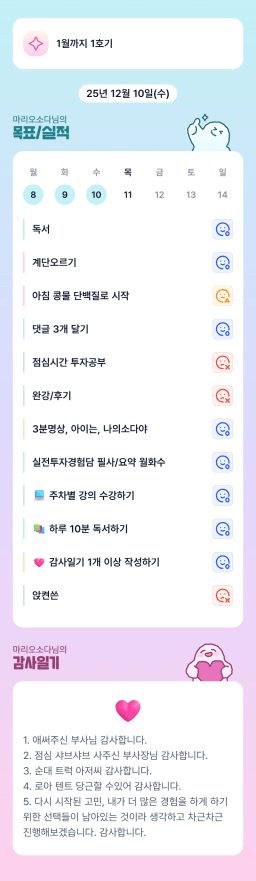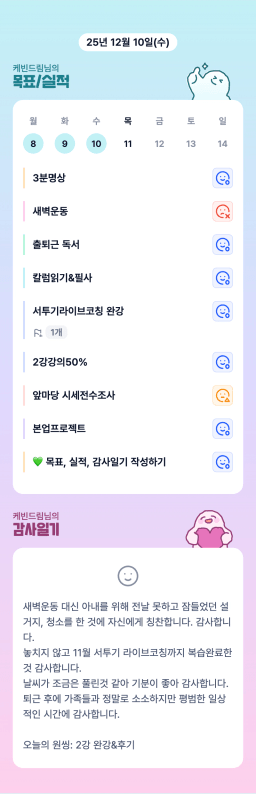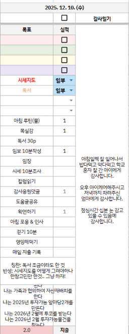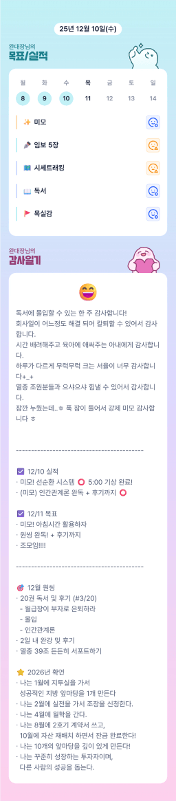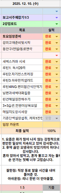 25년 12/11 목표,실적,감사일기,시간가계부[헤라클래스]