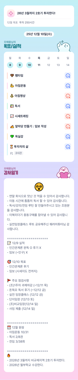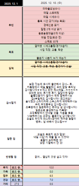 [성장함🧡] (2025.12.10.) DAY313 목표,실적,감사일기,시간가계부