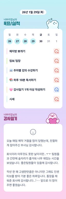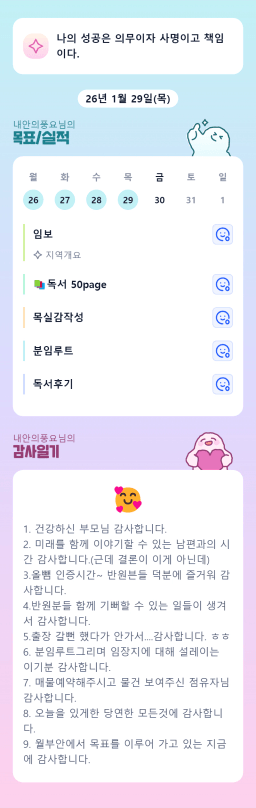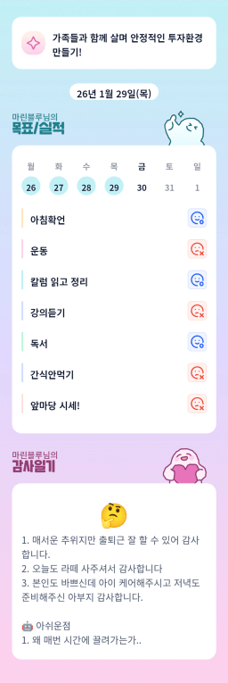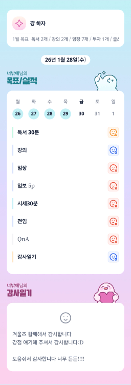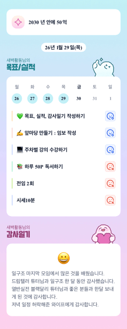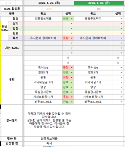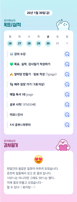 [정의] 2026년 1월 30일 목표, 실적, 감사일기