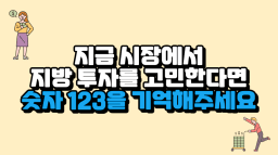 지금 지방 투자를 고민하신다면 숫자 1·2·3을 기억해 주세요. [허씨허씨]