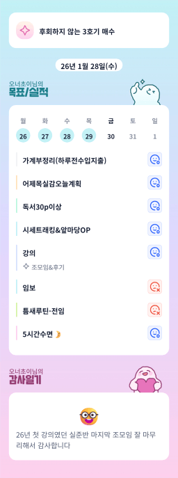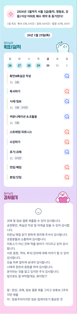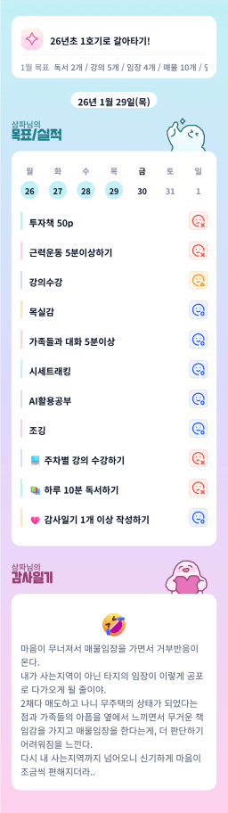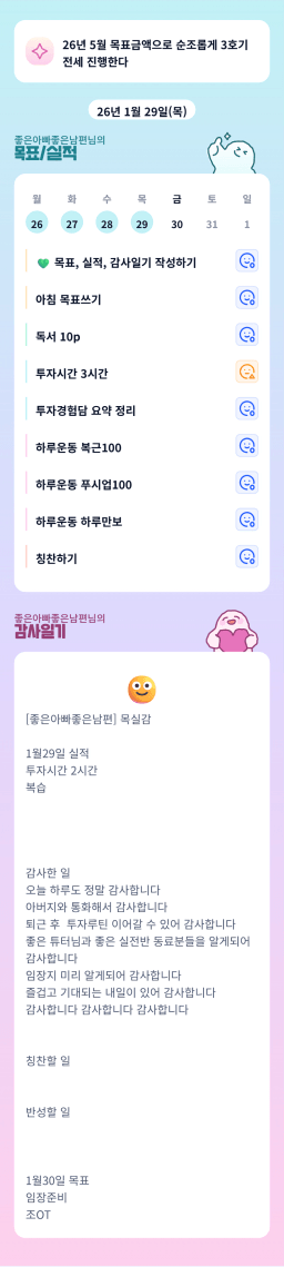 [실하게 준비해서 강남 등기 치르(72)고, 이사(24)하조. 원더] 목실감 2026.01.29(목) 매일 오전 부자 마인드 장착 프로젝트!!! 한다! 해낸다!! 된다!!! #29