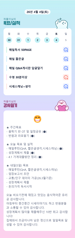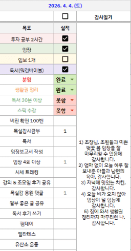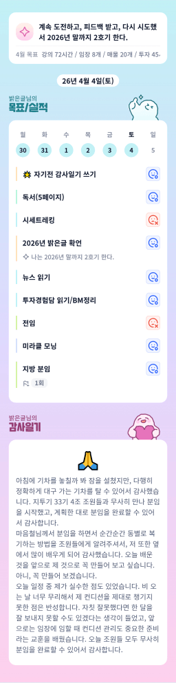 [밝은글] 목실감_한계를 넘어보자_20260404 누적 249일, 연속 247일 진행중