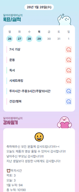 [우지공튜터님과 지투27기 왔다네 정말로 아무도 안 믿었던 투자해! 종말로!! 2t's5ver tonight 코루마블] 260129감삼미당♡