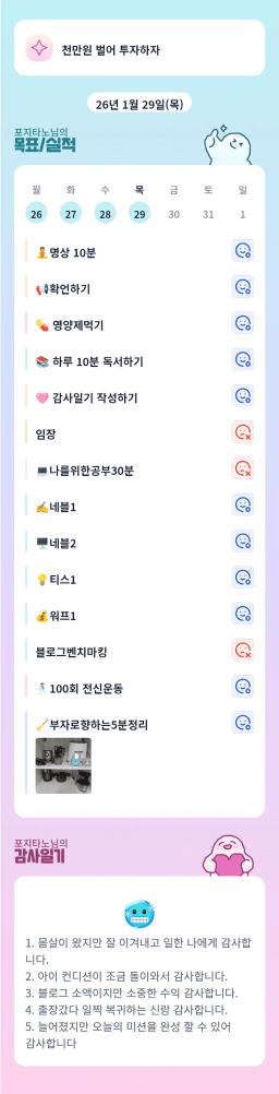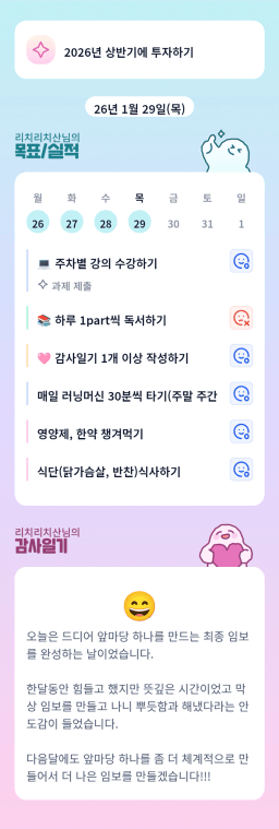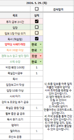 [실준72기 경제적자유를 위해 5늘도 꾸준히하조 리치리치산] 1월 29일 목실감