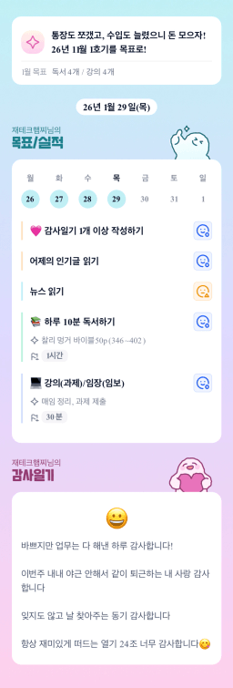 [스테디킴] 1월 29일 목실감, 시간가계부