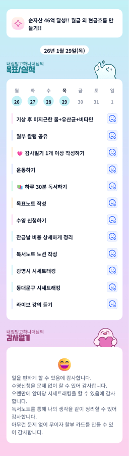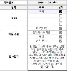 [실준반 72기 72개월 동안 앞마당 5️⃣0️⃣개 가능하조❤️ 꿈찾자] 26.1.29 목실감
