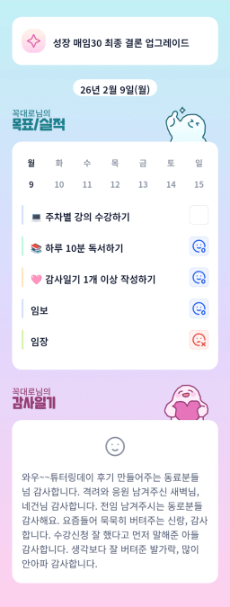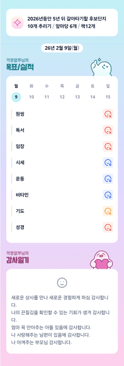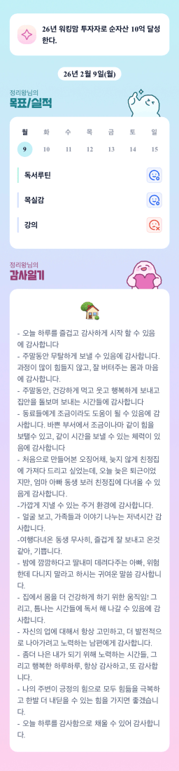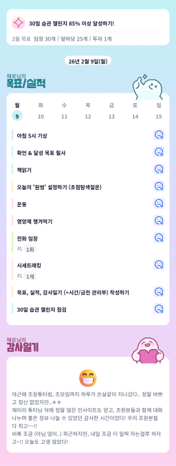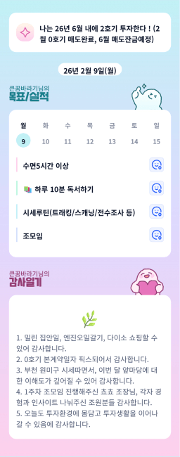 [행복한금붕이] 매일목실감 (20260209) D+290