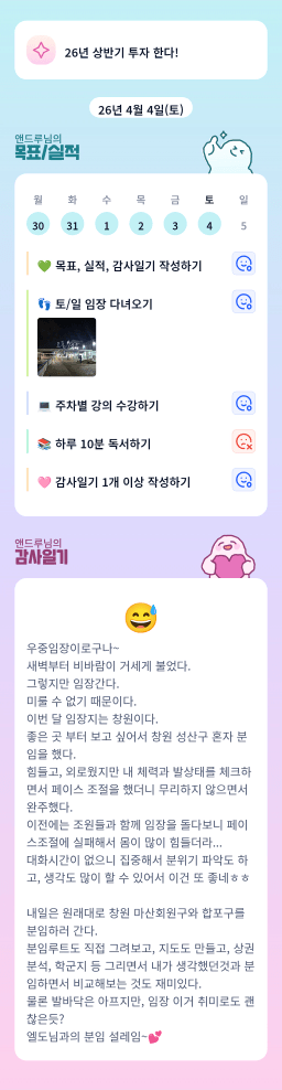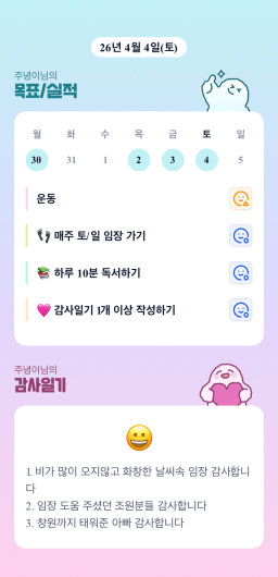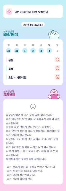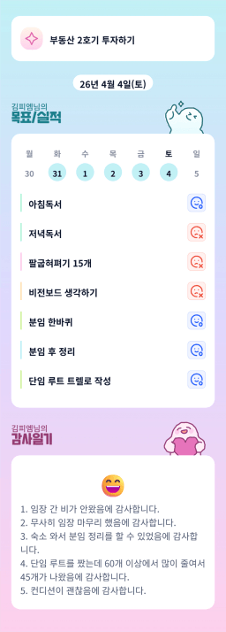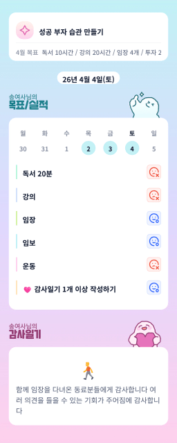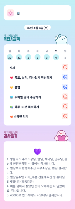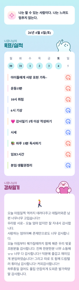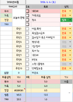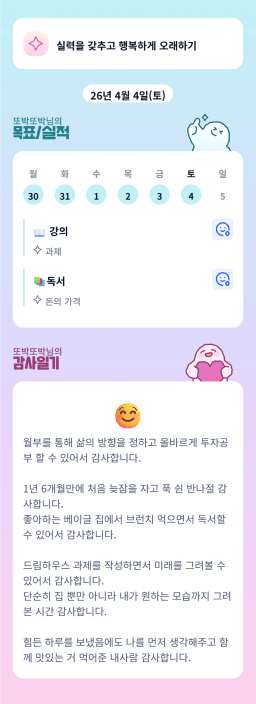 [정의] 2026년 4월 4일 목표, 실적, 감사일기
