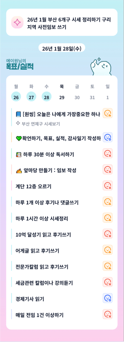 [실하게 준비해서 강남 등기 치르(72)고, 이사(24)하조. 원더] 목실감 2026.01.28(수) 매일 부자 마인드 장착 프로젝트!!! 한다! 해낸다!! 된다!!! #28