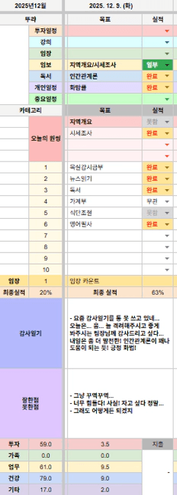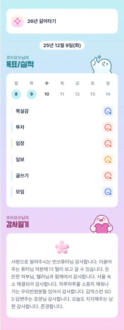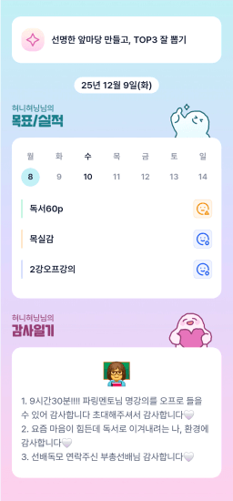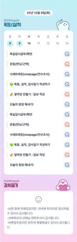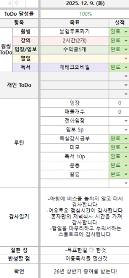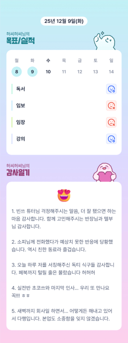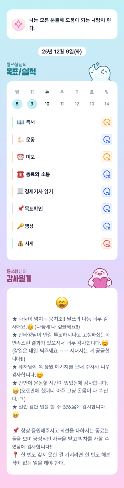 [러버블리v] 25.12.10 목표, 12.09 감사일기 + 칭반