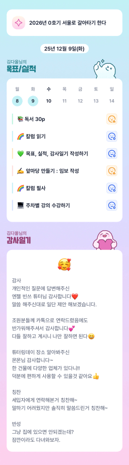 [내마실 엔젤빈쓰 튜터님과 함께하니 4주? 아니조~ 3주만에 내집마련 성공했조 김다올] 25.12.09.(화) 목실감