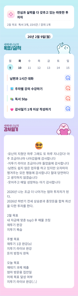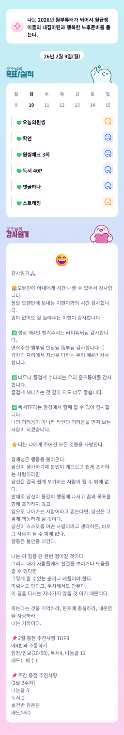 [재테기 12기와 함께 자산 16배 가자아조!! 떠하루] 2026.02.09 목실감