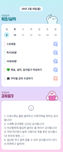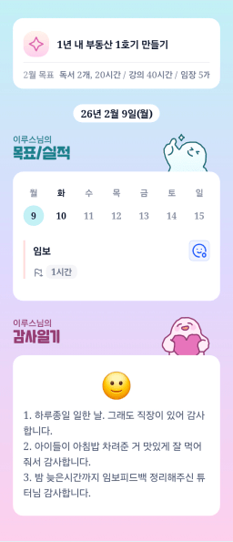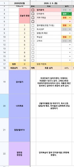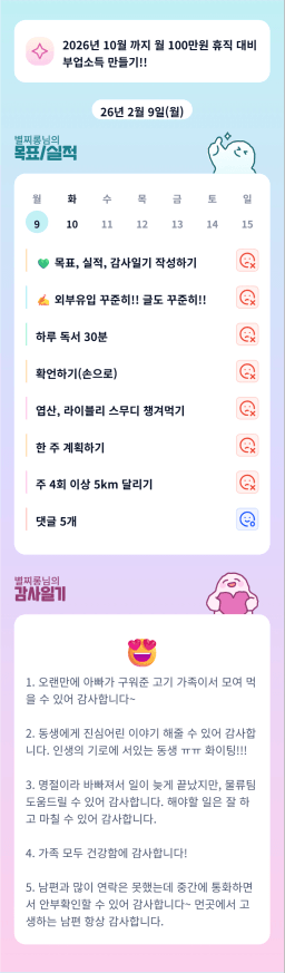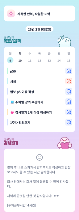 [별찌롱] 2/9 실적, 감사일기, 시간가계부 2/10 목표